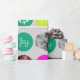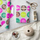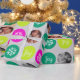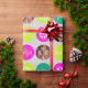 Fun holiday words and sentiments Christmas family photos wrapping gift paper in cool grey, bright hot pink, lime green, dark green and white. Customize with three of your own special photos. Uniquely designed by Sarah Trett.