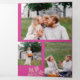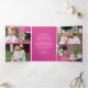 Personalize these 6 photo tri-fold Merry Christmas cards designed in deep rich raspberry pink with faux glitter pink snowflakes and create your own luxury holiday cards for family and friends. The front of each card features a single pink snowflake at the top, room for your name and the year at the bottom and Merry Christmas in a pretty white script font in between. Unfold the custom card to reveal the inside cover, decorated with more pink snowflakes top and bottom, where you can write a short holiday greeting in white. When these tri-fold Christmas cards are fully unfolded they reveal 6 photo templates, three on each side, so you can easily add your treasured family photos from the past year. The inside panel has room for you to add a short Christmas letter style message on the berry pink background if you wish. The colour trend for Christmas is pink, rich dark berry pink, and these elegant faux glitter snowflake holiday cards deliver the pink in style.