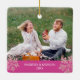 These personalized 2 photo ornaments with a dark pink and faux glitter snowflake theme are great to design for your own tree or as one of a kind keepsakes for family and friends at Christmas time. Each square ceramic Christmas ornament has easy to use photo and text templates so editing is a breeze. Add your photo to the front where it will appear with a deep berry pink border at the bottom, text in a simple white font so you title your image with a name and the year if you like, and two faux sparkle pink snowflakes, one on each side. The back of these personalized Christmas ornaments is laid out exactly the same but with separate picture and text templates so you can choose to add a second photo or repeat what you picked for the front. Customized ornaments with the fun colour theme of dark pink and faux glitter snowflakes are so easy to make your own, you can give them as custom Christmas gifts to almost everyone on your list.