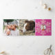 This Christmas colour trend is pink and these elegant 7 photo tri-fold Christmas cards embellished with faux glitter snowflakes bring on the pink experience. Personalized with your text and 7 family photos, these rich dark berry pink designer holiday greeting cards are unique once customized by you. The front cover of these square Christmas cards is a single faux sparkle pink snowflake with your photo in the centre circle. The easy to use round photo template requires nothing more than uploading your picture into the design where it becomes a round image. Two sets of white arched text surround the circular photo so you can include your names, the year and a short holiday message. The inside cover, the back and the right side of the inside fully folded out all have full bleed photo templates for you to add your pictures. The inside left panel has room for 3 smaller pictures in a collage format while the inside centre panel has three text templates in a white font on the dark purple background - Add your personalized Christmas greeting, a larger font for a simple MERRY CHRISTMAS or HAPPY HOLIDAYS and at the bottom room for your names. Personalized Christmas cards are a stylish way to send holiday wishes to family and friends and these dark raspberry with pink snowflake 7 photo tri-fold holiday cards are the easy way to create your own.