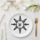 Snowflake Black and White Monogrammed Christmas Pa Paper Plate