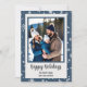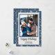 Enhance your holiday greetings with this elegant card. The serene blue-grey backdrop, adorned with delicate snowflakes, creates a serene winter ambiance. Personalize this card with your own cherished photo, turning it into a unique and heartfelt expression of your warm wishes for the season.