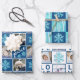 Personalize these coordinating blue opal snowflake wrapping paper sheets with your photos for one of a kind Christmas or winter holiday gift wrap. Each sheet is designed with accents of faux iridescent blue opal snowflakes to tie your custom wrapping paper designs together. Sheet 1 features a repeat pattern of two of your favourite photos, large snowflakes and PEACE in a handwritten script surrounded by three small blue opal snowflakes on a classic blue background. Sheet 2 is designed with large faux iridescent blue snowflakes on dark blue squares in a chequerboard pattern with JOY in white on faux blue opal backgrounds. Sheet 3 is a chequerboard style pattern alternating between your 2 of your photos bordered in deep blue, LOVE in a classic blue font and stylized blue opal snowflakes set on a white background. Create your own mix and match personalized Christmas photo wrapping paper sheets with this coordinating blue opal snowflake template design assortment.