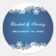 Snowflake blue white winter wedding Save the Date Classic Round Sticker