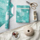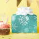 Pretty wrapping paper features a frosted snowflake fantasy design in Teal and white with bokeh effects.