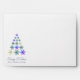 Festive and simple personalized Christmas holiday envelope. Beautiful colourful Christmas tree made of big and small snowflakes, Happy holidays text and personal note from you in trendy script handwriting. Send your holiday mail in this simple but stylish envelope to your friends and family.