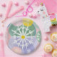 This whimsical and abstract artwork celebrates the unique beauty of snowflakes. A collection of stylized, white snowflakes, each with a distinct and intricate pattern, are set against a background of soft, pastel-colored circles. The orbs of pink, blue, yellow, and green float and overlap, creating a playful and decorative composition. The piece combines a feeling of winter's charm with a light, spiritual simplicity, turning individual frozen crystals into a joyful, cosmic-like arrangement.