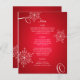 Snowflake Elegance winter wedding menu in red with decorative white snowflakes and custom text available on both front and back as needed.