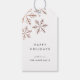 Modern, elegant holiday gift tags with falling rose gold snowflakes.