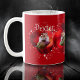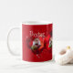 Hamster mug with four of your favourite small pet photos arranged on a snowflake filled red coffee mug.