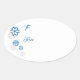 Oval shaped gift tag sticker is shown with Blue and Silver coloured snowflakes along with text of To: and From: form a lovely gift tag in sticker form made to coordinate with many gift wraps.