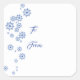 Square gift tag sticker shown with a blue snowflakes print with text of To: and From: form a lovely gift tag in sticker.