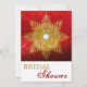Gold snowflake on red winter wedding bridal shower invitation that features a gold foil snowflake on red background with metallic shine, crumbled texture and a jewel. This personalized design is a fully customizable template and is part of a wedding set perfect for a winter December or Christmas wedding. Note that there is not any real gold foil or jewel and they are all printed images.