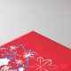 Snowflake greetings in red, blue and whites. May you have cozy and warm holiday time! Cheers!
