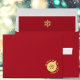 Create custom snowflake holiday envelopes for the Christmas season. The holiday envelope features a snowflake ornament design. Custom text on the front of the envelope. Great for those planning a Christmas party and looking for mailing accessories. Nice red and gold colours. Use the template to create your own custom snowflake holiday envelopes.