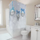 Festive holiday ornaments are pretty over a snowflake background. This winter and Christmas theme shower curtain brings seasonal cheer to your home. Happy Holidays!