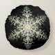 Snowflake ice lace winter white and black elegant round pillow