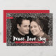 The words "Love. Peace. Joy." rendered in modern brush calligraphy plus a delicate snowflake frame make this holiday photo card extra special. Personalize with your own photo, message, and names.