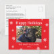 his high-quality, fully customizable photo holiday postcard is perfect for retailers seeking family-friendly seasonal products. It features a classic photo template (easily replaced with the customer's photo) set within a festive deep red border and adorned with delicate white snowflakes. The design combines traditional Christmas elements with the high-demand category of personalized photo greeting cards. Ideal for the Christmas, Winter Holiday, and Season's Greetings market. Appeals to families, individuals, and customers looking for unique, memorable, and stylish holiday greetings.