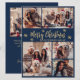 Snowflake Navy and Gold 5 Photo Collage Christmas Holiday Card