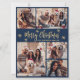 Modern Simple Elegant Calligraphy Navy and Gold Snowflakes 5 Photo Collage Merry Christmas Script Holiday Card. +++ PLEASE NOTE, THESE 6.5" X 8.75" SIZE CARDS ARE LARGER THAN AVERAGE, DUE TO THE LARGER CARD SIZE, IT'S ALMOST CERTAIN THAT THE POSTAGE COSTS WILL BE HIGHER. IF YOU PREFER THE STANDARD 5X7" SIZE, YOU CAN FIND THE CARD AT THIS LINK: https://www.zazzle.com/navy_and_gold_snowflake_5_photo_collage_christmas_holiday_card-256347525580049074 OR SCROLL DOWN, AND YOU'LL EASILY FIND THE 5X7 CARD IN THE COLLECTION BELOW. +++ This festive, minimalist, whimsical five (5) photo holiday greeting card template features a pretty grid photo collage, some snowflake and says „Merry Christmas”! The „Merry Christmas” greeting text is written in a beautiful hand lettered brush font script in gold on navy blue colour background. On the reverse side with your greeting message template with 3 little snowflakes one photo template. Cute greeting card for your family and friends in Christmas Holiday season.