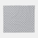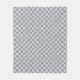 Grey and white fleece blanket with a wintry pattern of snowflakes.