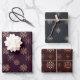 These stylish wrapping paper sheets have three different watercolor, snowflake patterns in elegant rose gold on a dark red or black background. Perfect for holiday gift wrap, winter birthdays, or any other seasonal occasion, family and friends will love these modern designs.