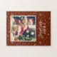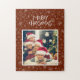 Celebrate the holidays with this custom family photo jigsaw puzzle. Puzzle has a snowflake pattern on red and the text Merry Christmas. Add your family image for a personalized touch.