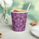 Serve your holiday beverages in these cute Christmas paper cups in a festive dark plum purple and faux glitter snowflake design personalized with your text and add a custom touch to your celebration. A pattern of faux sparkle snowflakes on deep amethyst purple is the background for two circles of solid plum purple rimmed in white, one on each side of these personalized holiday paper cups. A single purple snowflake is set in the centre with white curved text above and below. Customize this text to add your name, a holiday greeting or the name of your event to be printed on each purple snowflake paper cup. Your guests will appreciate the elegant touch that these rich plum purple snowflake paper cups bring, from a holiday party to your family Christmas gathering or the annual office Christmas party.