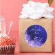 Dark but bright blue background embellished with sparkeling snowflakes and stars in different hues of purple and dusted with white sparkles. Delicate and pretty. Personalize if you wish.