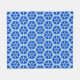 Fleece blanket in a geometric, honeycomb quilt pattern of snowflakes in deep cobalt blue and white, accented with turquoise