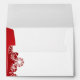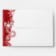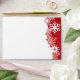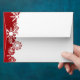 Snowflake red white winter wedding envelope, featuring a white border of snowflakes on glowing red background. A perfect choice for Winter December weddings.