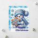 Spread holiday cheer with our adorable Snowflake Snowman Christmas Card. Featuring a cute snowman wearing a blue knitted hat and scarf, holding a large, intricately designed snowflake cookie, this card captures the festive spirit perfectly. The background is adorned with various snowflakes and blue baubles, with the text "Merry Christmas" boldly displayed at the bottom. This 5x7 flat matte card is perfect for sending warm wishes to family and friends, adding a touch of wintery charm to your holiday greetings.