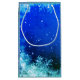 Dark but bright blue background embellished with sparkeling snowflakes and stars in different hues of turquoise and dusted with white sparkles. The sides are dusted with glitter look in matching hues. Delicate and pretty. Personalize if you wish.