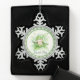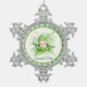 A cute little ornament that could be used for a baby shower or for a babies first Christmas. An image of a baby in a pea pod all in green. This is framed in the snowflake ornament.