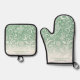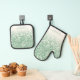 Snowflake Swirls On Green Cute Custom Christmas Oven Mitt & Pot Holder Set