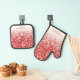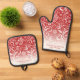 Snowflake Swirls On Red Cute Custom Christmas Oven Mitt & Pot Holder Set