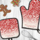 Elevate your holiday kitchen decor with this elegant oven mitt and pot holder set featuring a stunning design of snowflake swirls on a red background. Perfect for adding a touch of festive sophistication to your culinary space, this set is both practical and beautiful. Customize it with your name or a special message to make it uniquely yours or as a thoughtful Christmas gift. This set provides essential protection while cooking and baking, making it a delightful and functional addition to your seasonal kitchen accessories.
