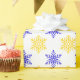 Add a touch of winter wonder to your gift-giving with our vibrant yellow and blue snowflake patterned gift wrapping paper. This joyful and elegant design captures the essence of a frosty day, making every present feel like a special treasure. The cheerful yellow background and intricate blue snowflakes create a striking contrast that's perfect for any occasion. Wrap your gifts in this paper to make a statement and share the joy of the season with your loved ones. Bring a burst of winter magic to your gifts with our enchanting snowflake wrapping paper.