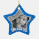 Snowflakes Baby's First Christmas Navy Blue Star Ornament. Personalize with your little one's name and information as well as the year.