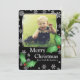 Snowflakes and Holly on Black Custom Photo Holiday Card
