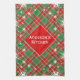 Traditional Christmas colours in a plaid pattern with a diamond shape in the middle and text that can be customized. This would make a great Christmas gift for someone who loves spending time in the kitchen.