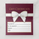 Luxurious and rich holiday design featuring a splendid Christmas tree silhouette with golden snowflakes. Decorated with a white gold gift bow on a raspberry violet lush red dark pink background. This festive gift certificate is perfect for your small business or to gift friends and family.