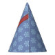 Cute Christmas Hamster design, perfect for the holiday season. This cute hamster is standing behind a red ribbon and bow, and there is a snowflake pattern. Background is blue.