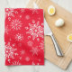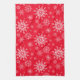 Cette serviette de cuisine est montrée en rouge avec un imprimé classique des flocons de neige de Noël. Customisez cet objet ou achetez comme indiqué.