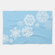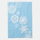 Serviette de cuisine en bleu glacé avec imprimé flocon de Noël. Customisez cet objet ou achetez tel quel.