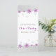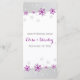 Elégante carte de menu mariage moderne violet et étoiles gris argenté présentant des flocons de neige violet élégant et des étoiles gris ou gris argenté sur arrière - plan blanc.