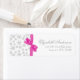 Une étiquette d'adresse de retour sur le thème du pays des merveilles d'hiver, avec illustration d'arc en ruban rose imprimé et flocons de neige en argent. Les dessins sont des illustrations et des graphiques imprimés à plat - PAS RÉELLEMENT RIBBON.