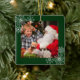 Square ornament with photo with stylish snowflakes. Features Merry Christmas in script and family name and year on the back. Lovely keepsake to hang on your tree or to send to family and friends at the holidays.
