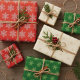 A trio of Holiday Wrapping Paper Sheets, the perfect way to add a touch of warmth and charm to your gifts this festive season! Embrace the spirit of the holidays with our homespun pattern featuring delicate snowflakes in elegant white and gold, set against vibrant red and green backgrounds.